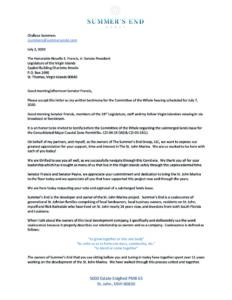 Testimony by Opponents of the Summers End Group